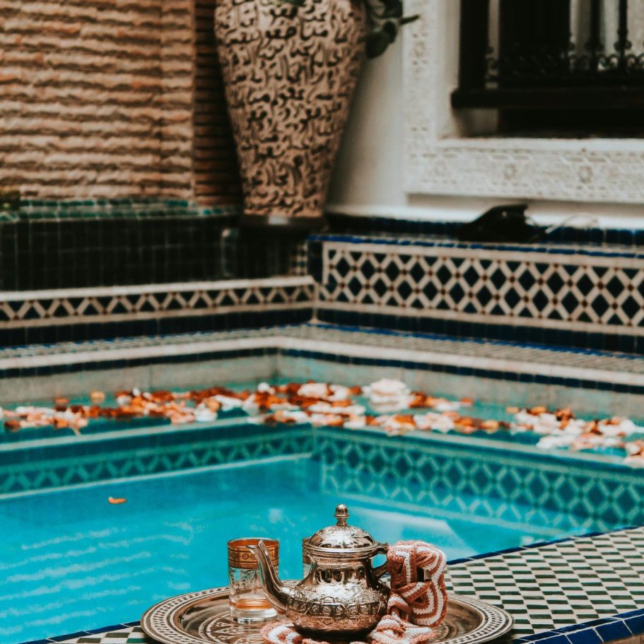 Plus qu'un soin, une renaissance. Dans la pénombre d'un riad historique, profitez d'un rituel traditionnel complet (gommage au savon noir et enveloppement à l'argan) pour libérer les tensions.
